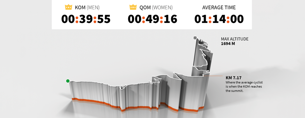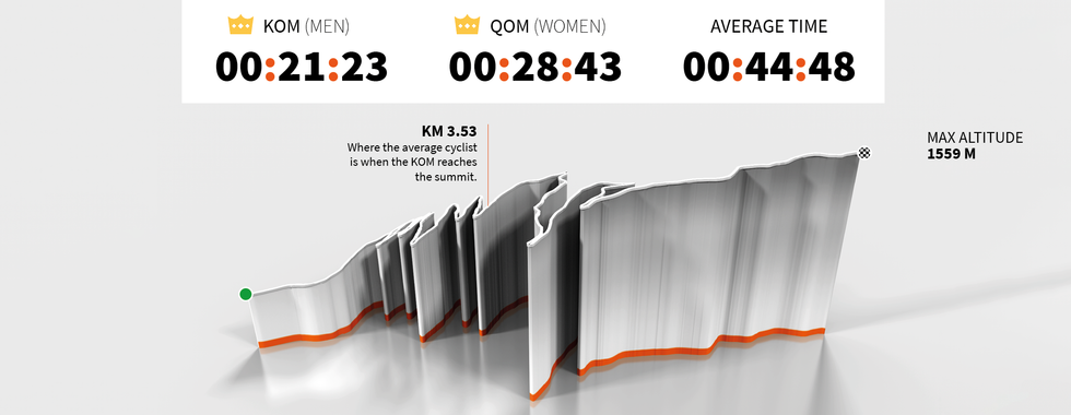 Todos os segmentos ao longo do percurso do Tour, com as informações dos Local Legends de cada um deles.